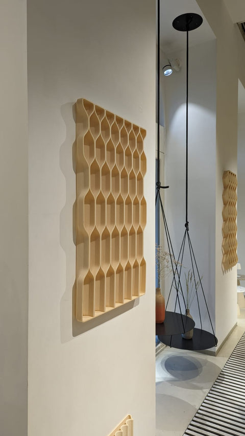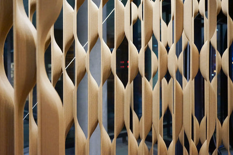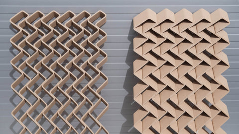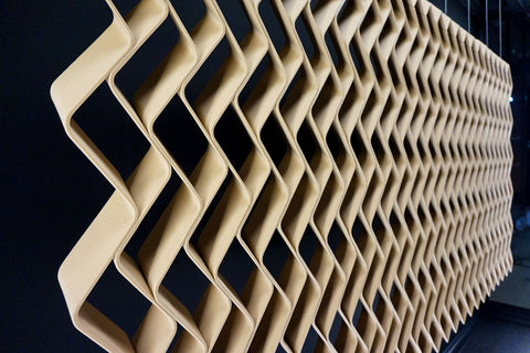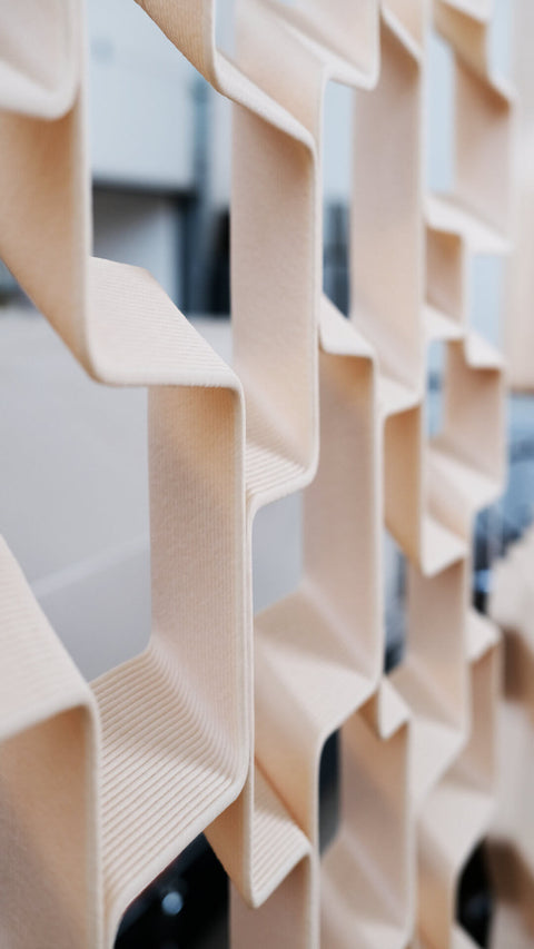 Modulární panely představují flexibilní řešení pro vnitřní příčky nebo stěnové panely. Pomocí velkoformátového 3D tisku umožňují vytvářet opakující se vzory a komplexní, zakázková řešení s minimálním odpadem. Panely mohou sloužit jako dělicí stěny nebo prvky, které dodávají interiéru jedinečný vzhled, a charakter.