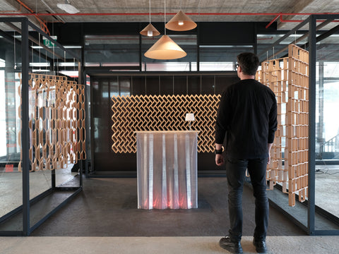 Společný projekt s 3D tiskovým labem Voxell přinášíme velkoformátovou aditivní výrobu do oblasti interiérového designu. Naším cílem je spojit estetiku a funkčnost s pokročilou technologií 3D tisku a nabídnout tak architektům a designérům novou platformu pro kreativní práci. Výsledkem této spolupráce jsou modulární panely, které obohacují interiéry o jedinečné funkční prvky.